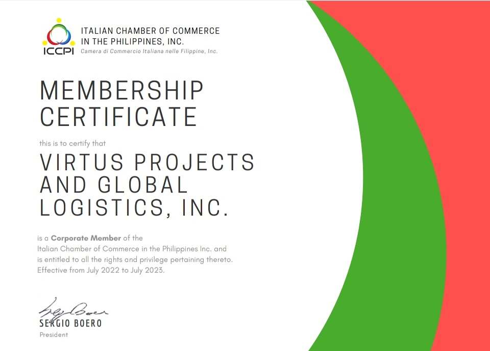 Congratulations to Virtus Projects and Global Logistics, Inc on becoming a corporate member of the Italian Chamber of Commerce in the Philippines Inc!