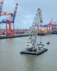 Aprojects organized a smart solution for the customer, as they used the Hachmannkai for the discharge. The discharges were done by the HHLA IV (Floating Crane).