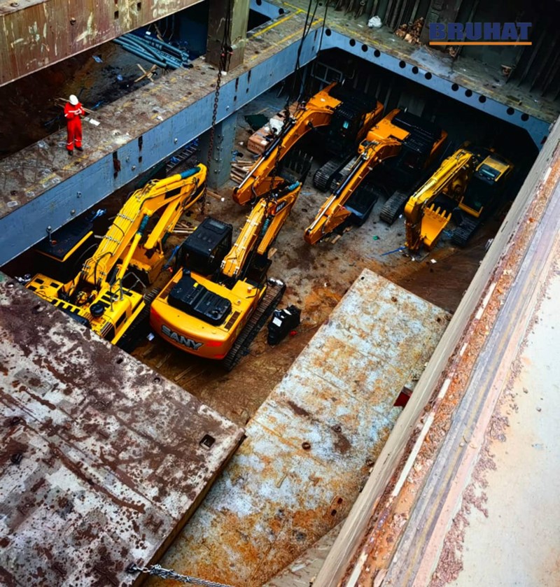 Bruhat Logistics, a proud member of the XLProjects (XLP) project network, recently executed a comprehensive transportation project involving the shipment of large construction equipment from the Far East to the Middle East. The equipment, including two excavators and various accessories, required specialized handling throughout the journey to ensure safe and timely delivery.