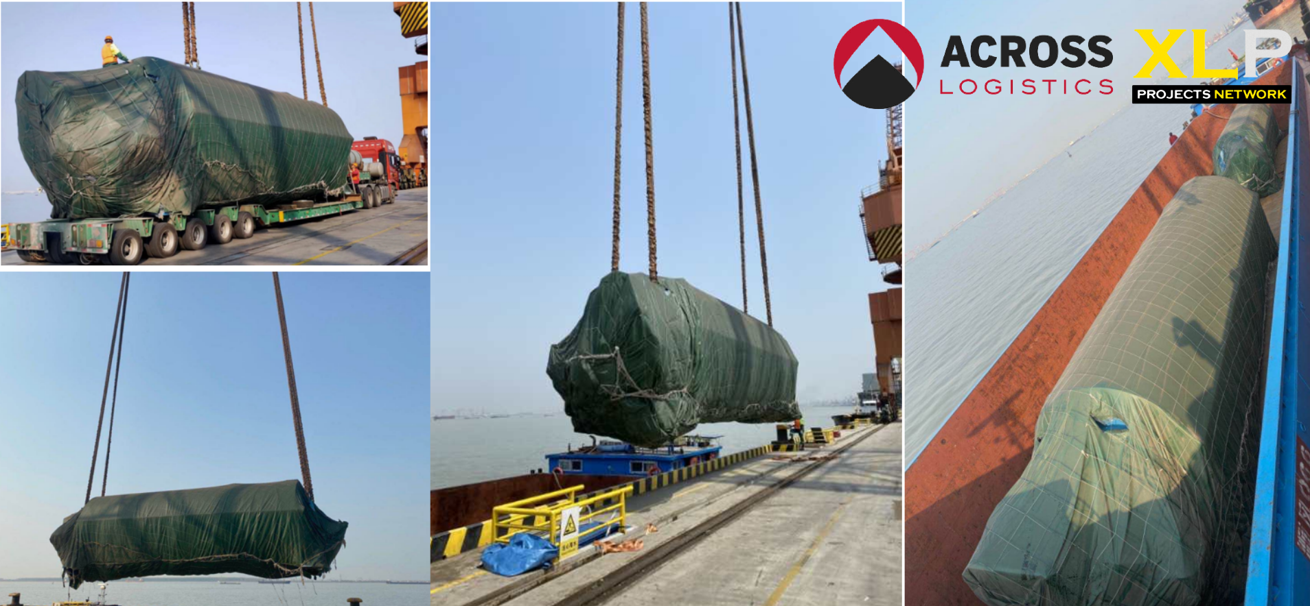 Across Logistics successfully handled three machines from door to Zhangjiagang port, and moved it to Shanghai port by feeder. The total weight of the machines were 200 tons with a total volume of 430.73 CBM....