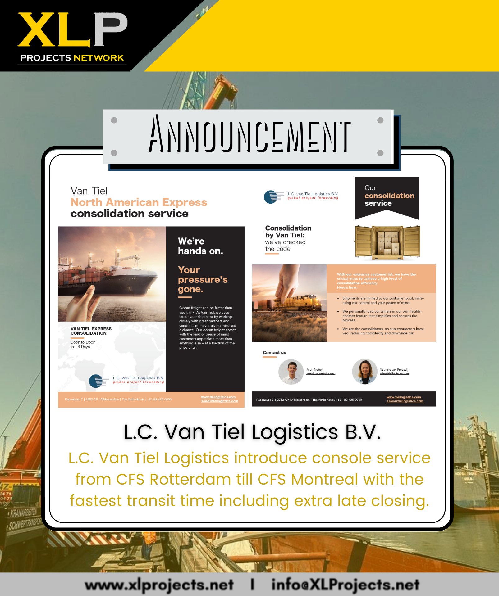 L.C. van Tiel introduces their console service from CFS Rotterdam till CFS Montreal with the fastest transit time including extra late closing. This is an additional service which they have supported since the rates of...