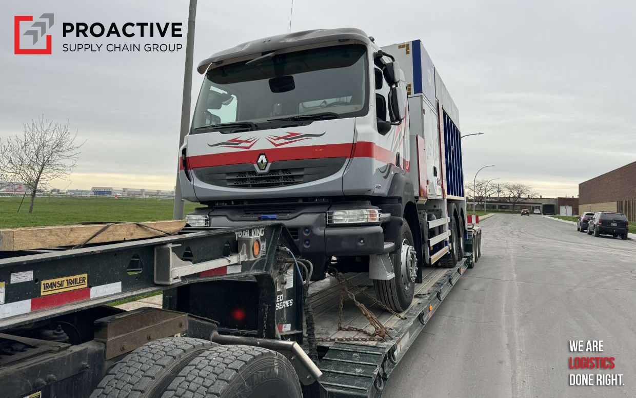 Proactive Supply Chain Group in Montréal has successfully transport an over-dimensional sewer vacuum truck from the Port of Montréal, QC to Red Deer, AB. The truck, weighing over 49,000 lbs. and measuring 363" x 117"...