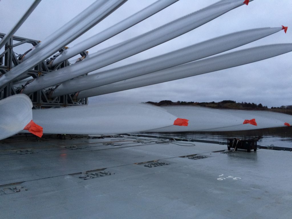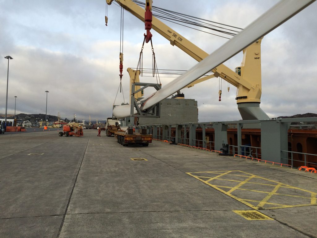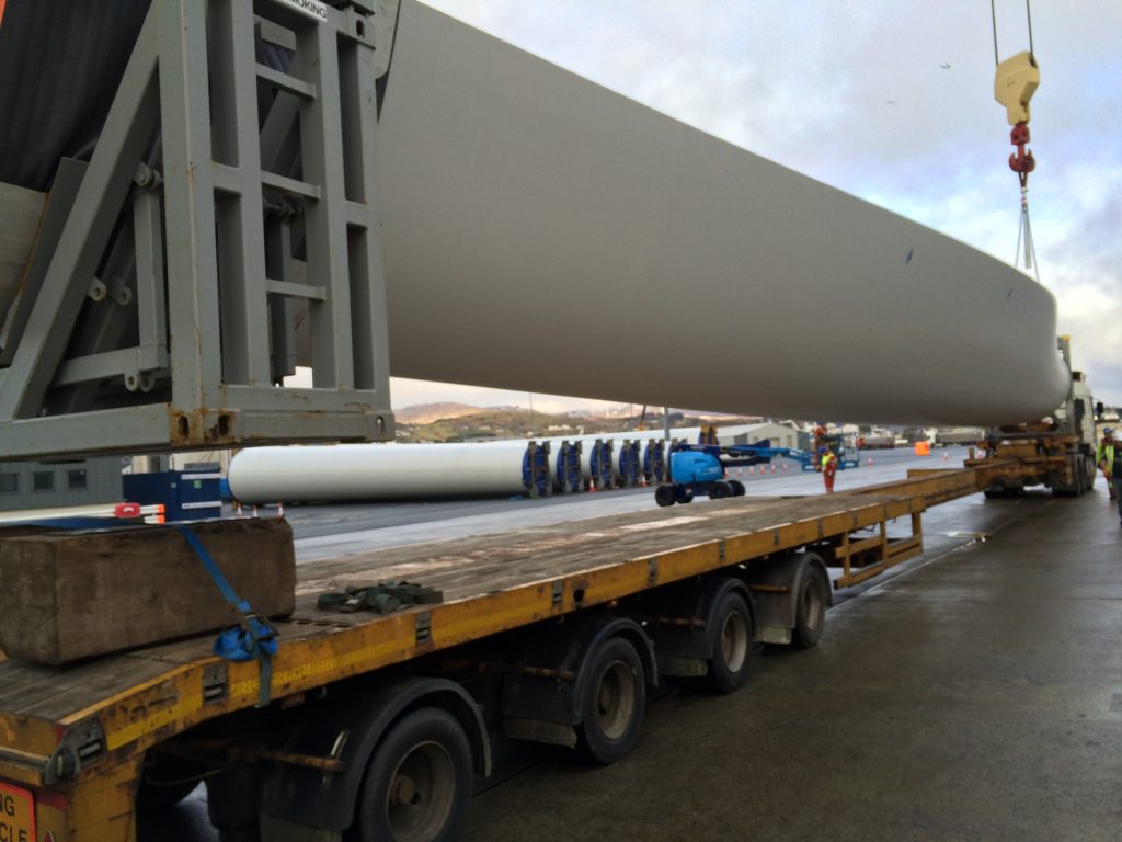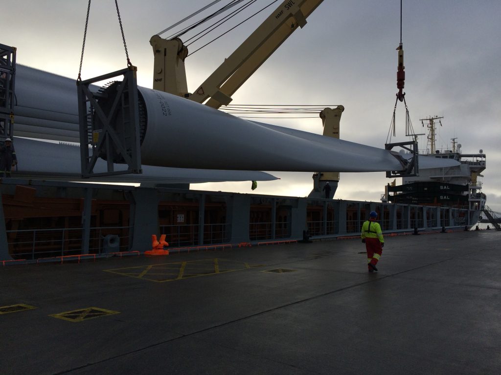 All 18 blades and 6 towers are now in storage in port area and will soon be uplifted to wind farm site located the northwest of Ireland.
