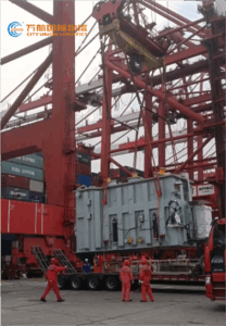 This complex shipment involved a heavy lift main body shipped as BBK, along with 7 x 40HQ loading accessories and 4 x 20GP SOC loading for transformer oil – all shipped as one lot on a single vessel with transit via Kingston.
