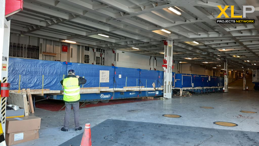 10 out of 27 cases were 15 meters long and extendable trailers were required to move the cargo from two sites in the UK to Southampton, where they were loaded onto 5 x Mafi’s.