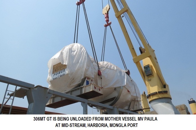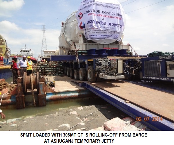 HLs and ODCs were received from mother vessels at Mongla Port on flat barges and were transported by river from Mongla to Ashuganj. The HL and ODC were unloaded from barges by RORO method and hauled to project site by SPMT.
