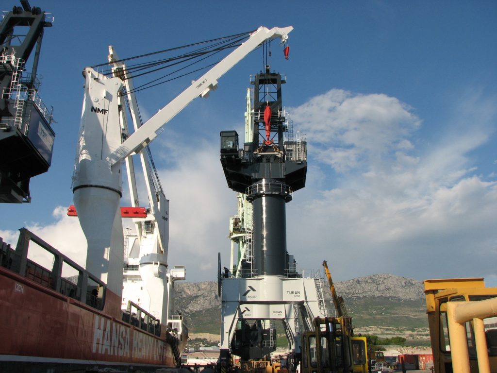 Dealex Transport LLC carries Tukan slewing cranes from Split, Croatia to Yuzhny, Ukraine