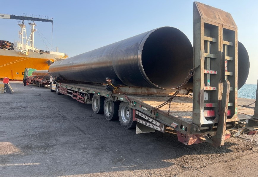 A comprehensive route survey was conducted to ensure that the transportation path was feasible and safe for the movement of the oversized pipes. This survey was critical in identifying potential obstacles and planning the best possible route to avoid delays.