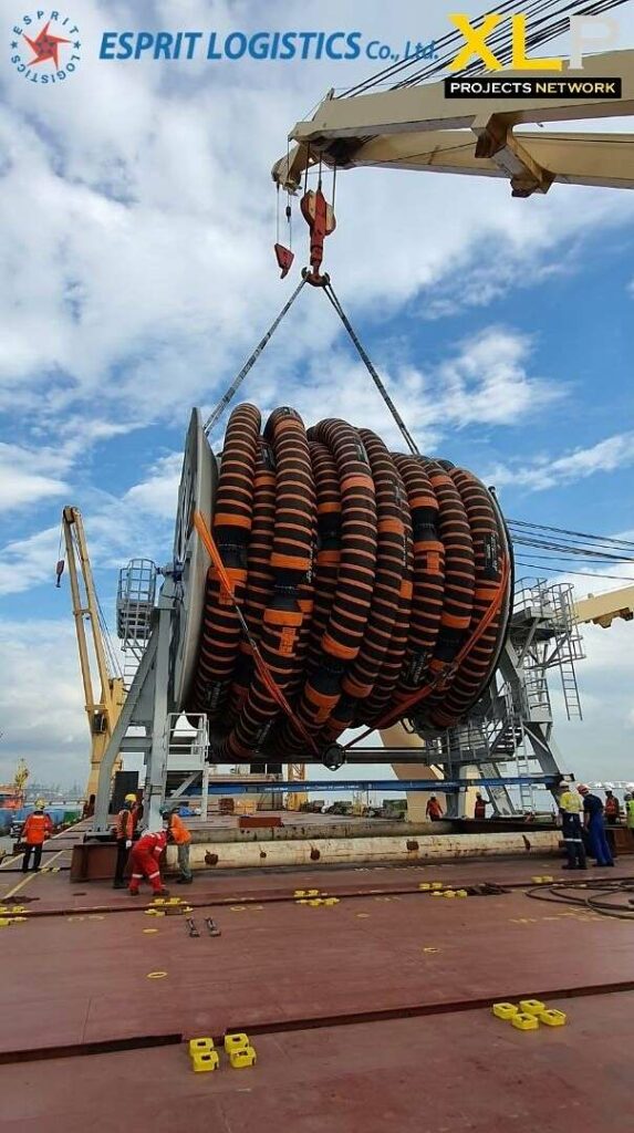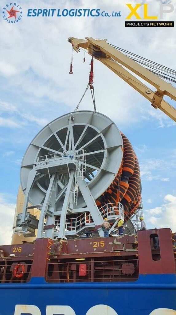 Esprit Logistics exported one unit hose reel, on skid ex-Singapore private yard to Goeje, South Korea. The dimension of the hose was 17.50L x 13.60W x 14.80H meters, with a gross weight of 256 metric tons.