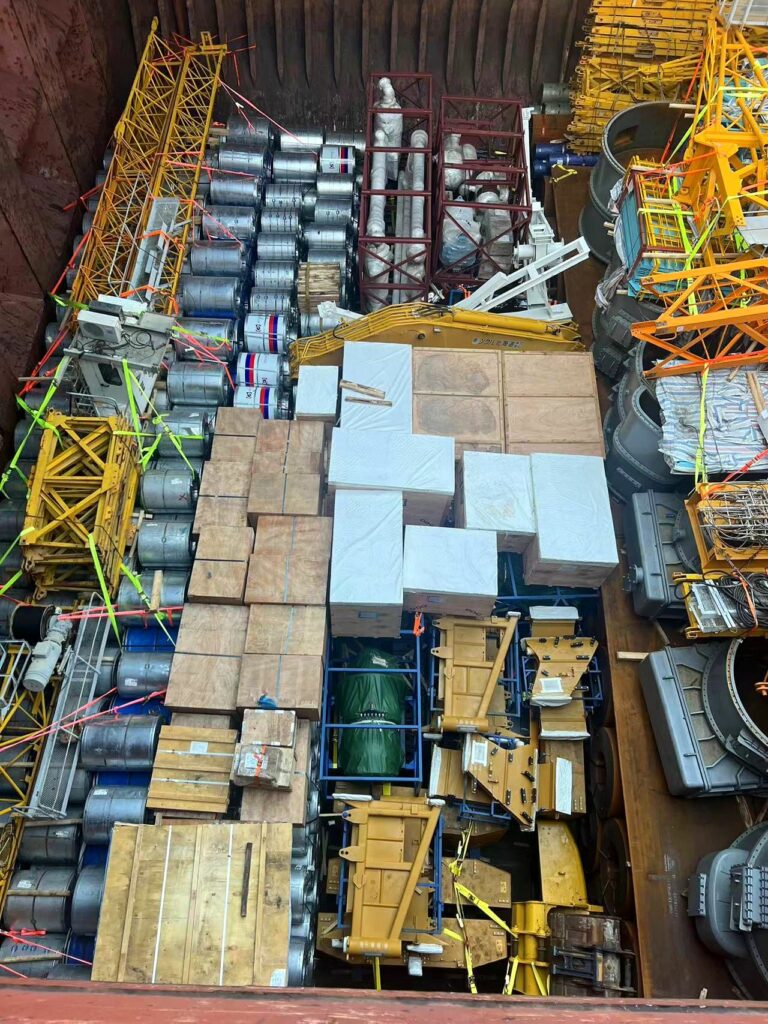 ESS Projects, a proud member of the XLProjects Network (XLP), has successfully completed the transport of a 3,500 FRT project cargo shipment from Tianjin, China, to Dammam, Saudi Arabia. This shipment, conducted on a full-liner term basis, included tower cranes, steel coils, and excavators, with one particularly challenging 80-ton heavy-lift unit.