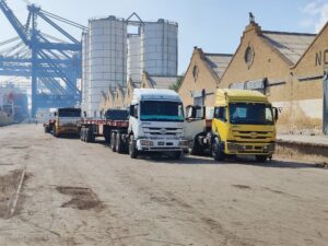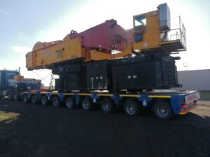 The crane was originally transported from the warehouse in Johannesburg to the Port of Durban using a multi-axle, low bed, and high bed trailer combination. FCG’s accomplishment on this move, covering a total distance of 10,433 KM, is a testament to the company’s expertise of experienced professionals.