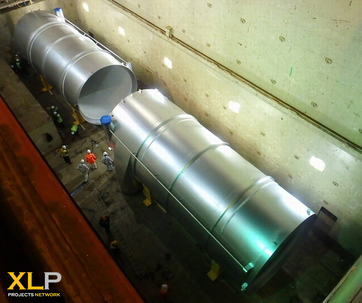 The two mufflers with dims of 12.02L x 5.84W x 5.54H were 35 tonne each. The mufflers were sent by barge to Busan port and from there taken direct under ships hook for loading to New Zealand.