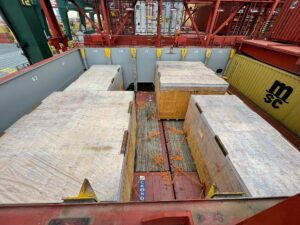 The second set of shipment consisted of accessories on one 40FR OOG and two 40’ HC. This shipment was loaded in Bilbao on container vessel to Kolkata.