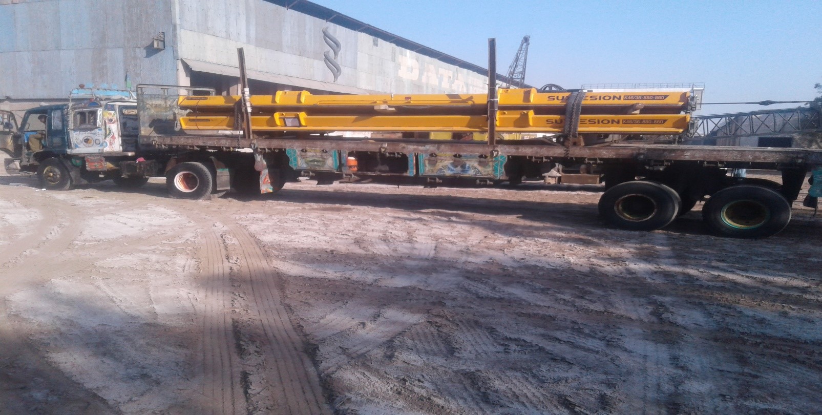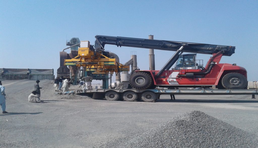 - Sadiqabad – Punjab, is small village area / sub-district of Rahim Yar Khan, and it had no arrangement or resources to make heavy cranes available to unload the Reach Stacker from the Lowbed. The MSL team discovered and arranged a platform 2 kilometers away from the factory at the Concrete Crash Plant where they offloaded the unit and delivered it safely and at the same time making it most economical for the valued customer.