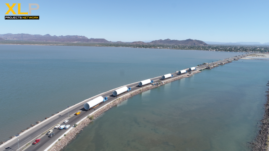 R.H. Shipping recently completed a National inland transportation of 6 silos for a brewery from Guaymas port to Ciudad Obregon Mexico with a dimensions of 23 x 6.80 x 6.80m, weighing 43 tons each.