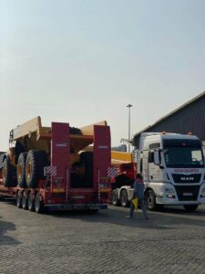 The equipment was transported from port of Antwerp, Belgium to port of Tema, Ghana. They came by RORO vessel, by sea. When they were cleared from the port, they were in transit directly, by road, to their client’s mining site.