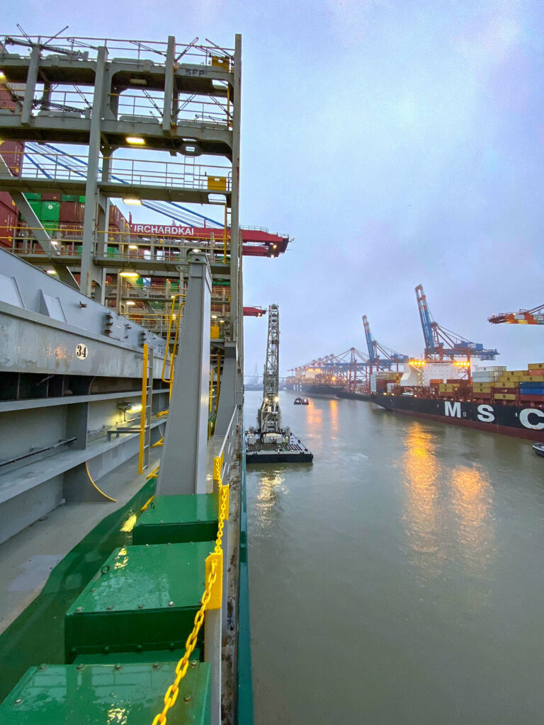 – Direct Discharge from Barge via HHLA Floating Crane onto Vessel