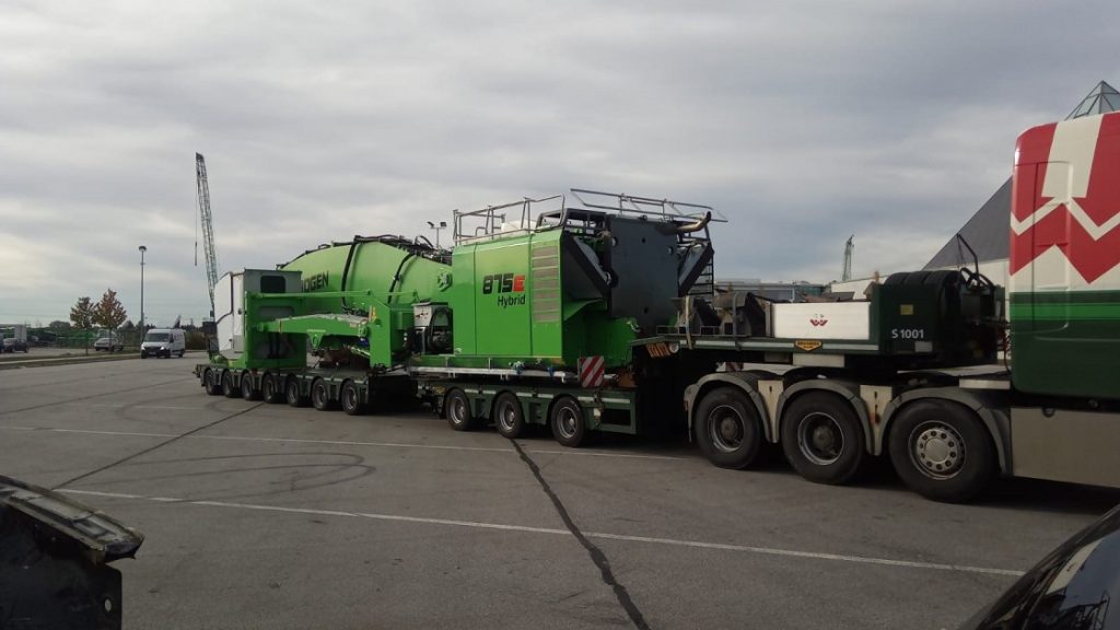 Westdijk Sweden recently organized a load in Germany from Straubing to Husum for an electric Sennebogen 875.